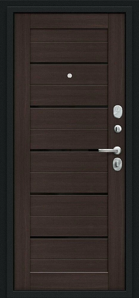 Надежная входная Браво Техно Kale Букле черное/Wenge Veralinga премиум класса по цене 34 033 руб. Большая толщина стали защитит от проникновения в ваш дом, квартиру или коттедж. Используется очень качественная фурнитура: замки, цилиндры, ручки, защелки. Покрытие и отделка двери изготовлено под внимательным контролем производителя. Дверь имеет долгий срок службы и гарантию.