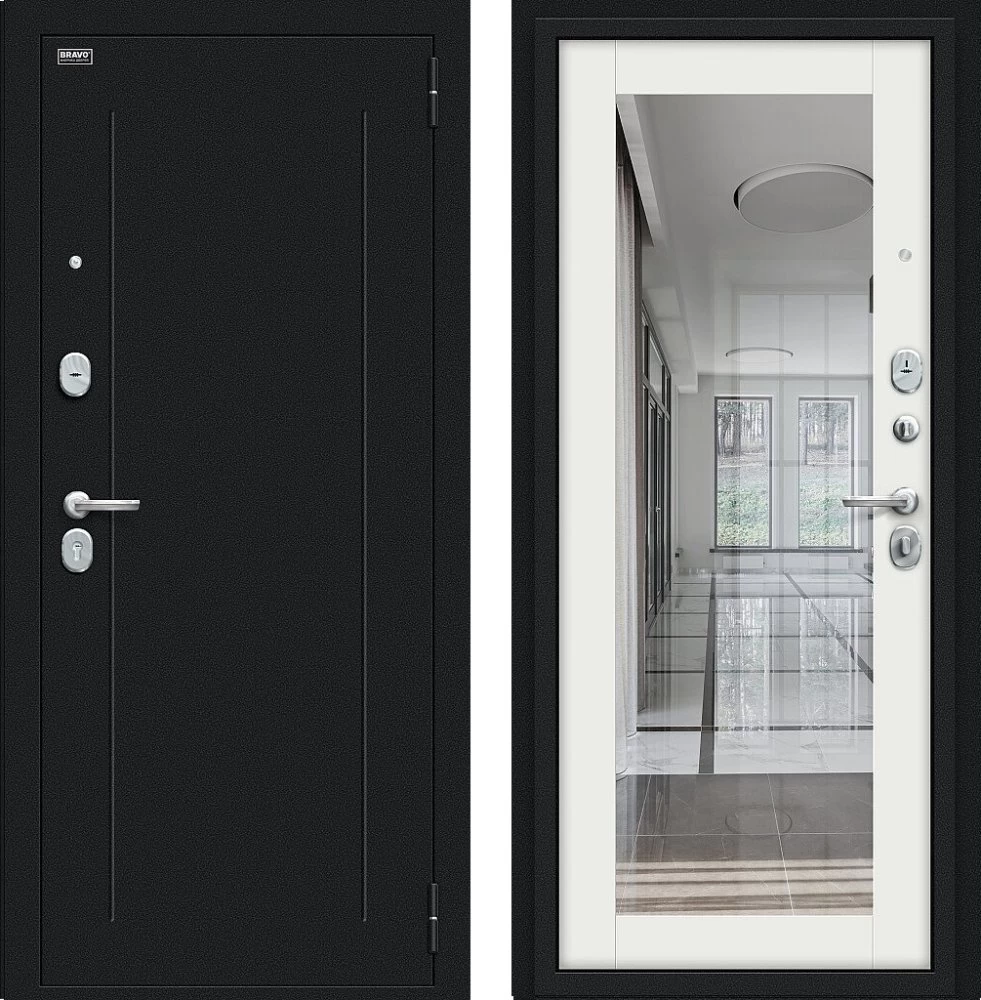 Надежная входная Дверь Браво Флэш Букле черное/Off-white премиум класса по цене 33 683 руб. Большая толщина стали защитит от проникновения в ваш дом, квартиру или коттедж. Используется очень качественная фурнитура: замки, цилиндры, ручки, защелки. Покрытие и отделка двери изготовлено под внимательным контролем производителя. Дверь имеет долгий срок службы и гарантию.