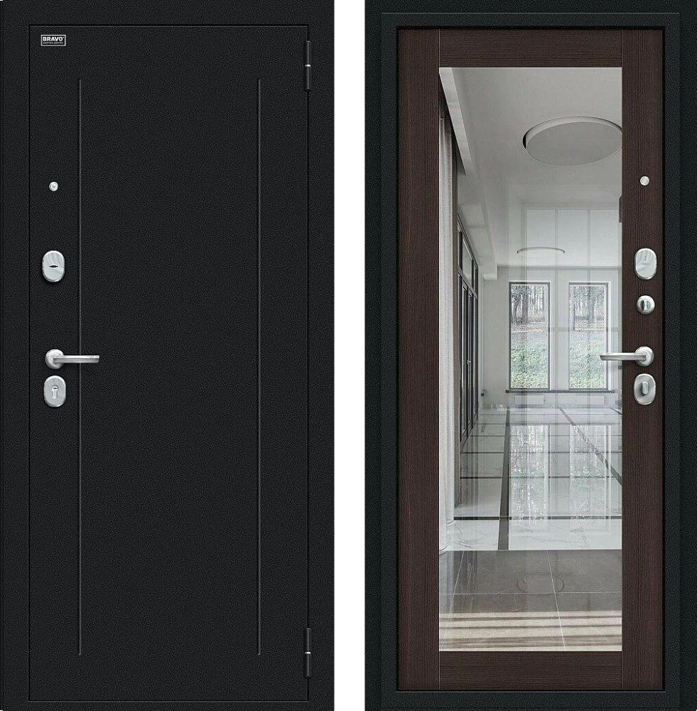 Надежная входная Дверь Браво Флэш Букле черное/Wenge Veralinga премиум класса по цене 32 733 руб. Большая толщина стали защитит от проникновения в ваш дом, квартиру или коттедж. Используется очень качественная фурнитура: замки, цилиндры, ручки, защелки. Покрытие и отделка двери изготовлено под внимательным контролем производителя. Дверь имеет долгий срок службы и гарантию.