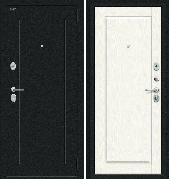 Надежная входная Дверь Браво Сьют Kale Букле черное White Wood премиум класса по цене 36 253 руб. Большая толщина стали защитит от проникновения в ваш дом, квартиру или коттедж. Используется очень качественная фурнитура: замки, цилиндры, ручки, защелки. Покрытие и отделка двери изготовлено под внимательным контролем производителя. Дверь имеет долгий срок службы и гарантию.