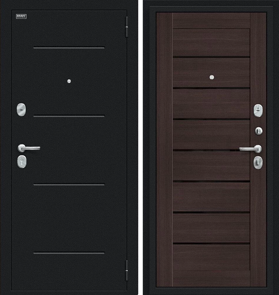 Надежная входная Дверь Браво Техно Букле черное/Wenge Veralinga премиум класса по цене 31 133 руб. Большая толщина стали защитит от проникновения в ваш дом, квартиру или коттедж. Используется очень качественная фурнитура: замки, цилиндры, ручки, защелки. Покрытие и отделка двери изготовлено под внимательным контролем производителя. Дверь имеет долгий срок службы и гарантию.