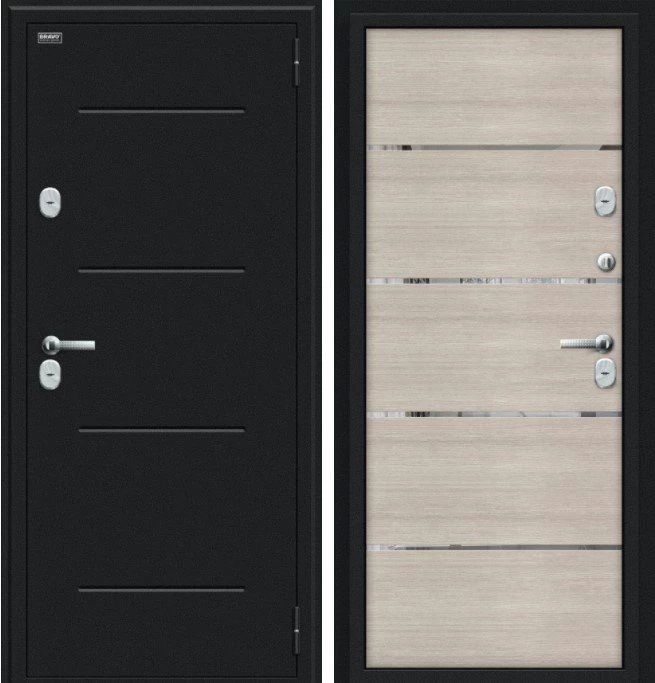 Надежная входная Дверь Браво Thermo Лайн Букле черное/Cappuccino Veralinga премиум класса по цене 47 633 руб. Большая толщина стали защитит от проникновения в ваш дом, квартиру или коттедж. Используется очень качественная фурнитура: замки, цилиндры, ручки, защелки. Покрытие и отделка двери изготовлено под внимательным контролем производителя. Дверь имеет долгий срок службы и гарантию.