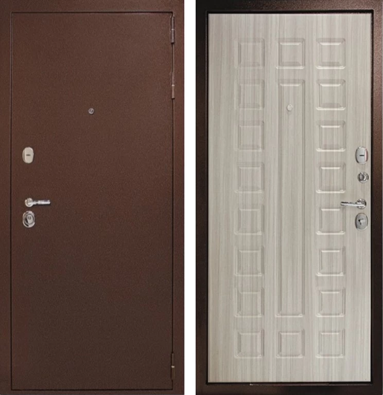 Надежная входная Дверь Рубикон 1 Медь Сандал белый премиум класса по цене 32 603 руб. Большая толщина стали защитит от проникновения в ваш дом, квартиру или коттедж. Используется очень качественная фурнитура: замки, цилиндры, ручки, защелки. Покрытие и отделка двери изготовлено под внимательным контролем производителя. Дверь имеет долгий срок службы и гарантию.