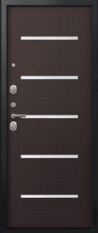 Надежная входная Дверь V-05 Черный муар - Темная лиственница премиум класса по цене 41 633 руб. Большая толщина стали защитит от проникновения в ваш дом, квартиру или коттедж. Используется очень качественная фурнитура: замки, цилиндры, ручки, защелки. Покрытие и отделка двери изготовлено под внимательным контролем производителя. Дверь имеет долгий срок службы и гарантию.